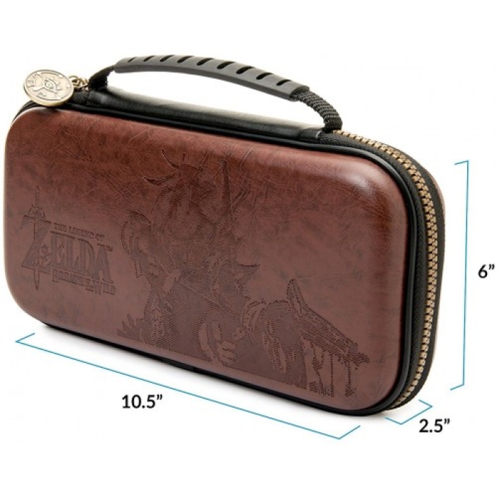 Świetne, wytrzymałe etui z wygodnym uchwytem do przenoszenia i specjalną przegrodą na ekran wykonaną z miękkiego materiału, stylizowane na gry The Legend of Zelda: Breath of the Wild, zapewni odpowiednią ochronę Twojej konsoli Nintendo Switch.