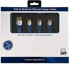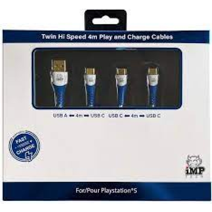 Zestaw kabli do ładowania PS5 (4 m) Pleciony kabel do szybkiego ładowania i grania TWIN Pack (4 m, Imp Tech) – szybki kabel do ładowania z USB-A do USB-C, zoptymalizowany do użytku z kontrolerami PS5 Dual Sense.